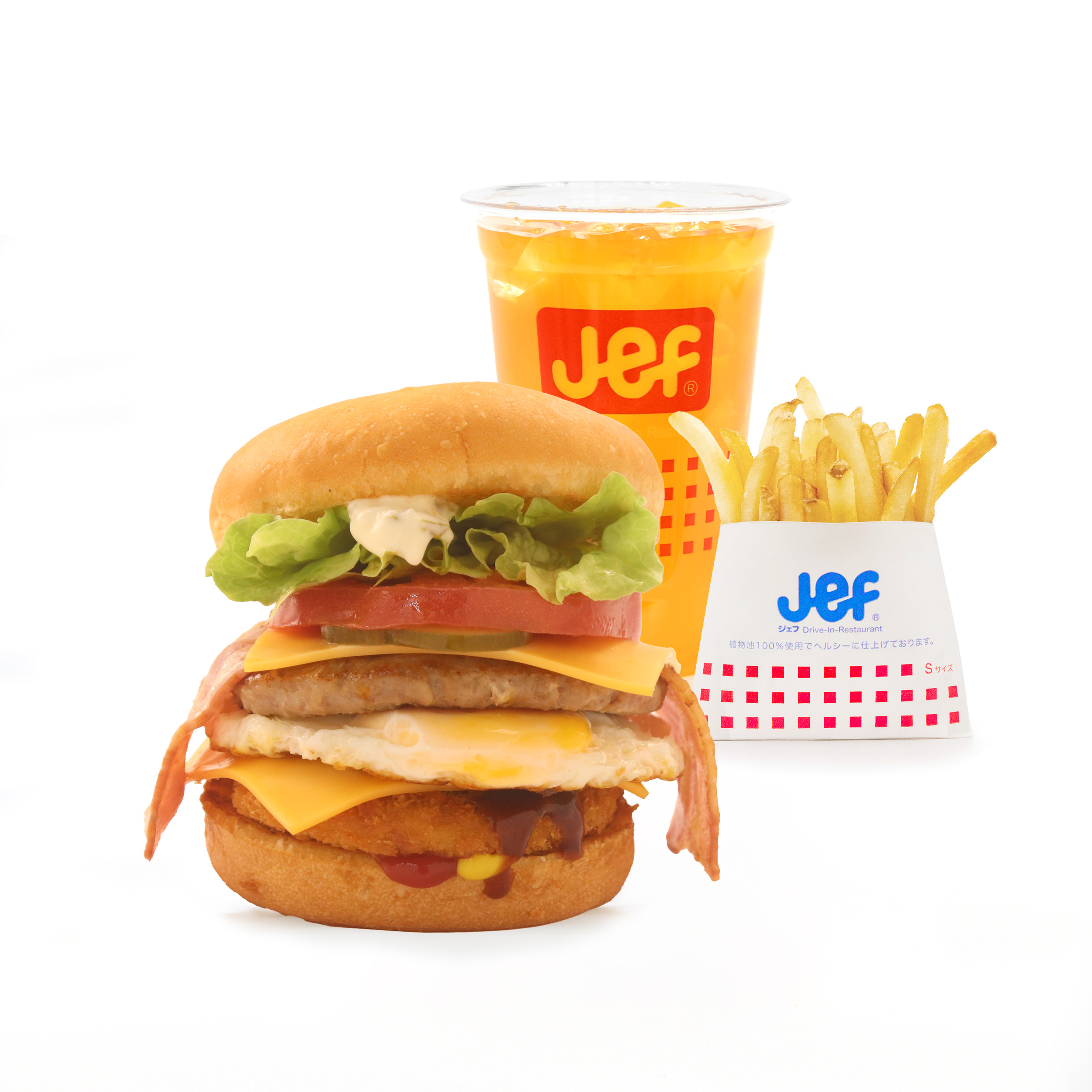 沖縄独特の食文化のひとつである「Aランチ」をバーガーにしたメニューが期間限定で今年も登場!!!! Aランチといえば、お肉が多めで色々な味を楽しめる豪華な洋食プレート。 Aランチバーガーはさくさくロースカツに牛豚合い挽き肉のジューシーなハンバーガーパティ、ベーコンに目玉焼きといった7種類の具材に自家製のタルタルソースや濃厚なドミグラスソースなどのソースをまとわせた、まさにAランチを食べているようなバーガーです。